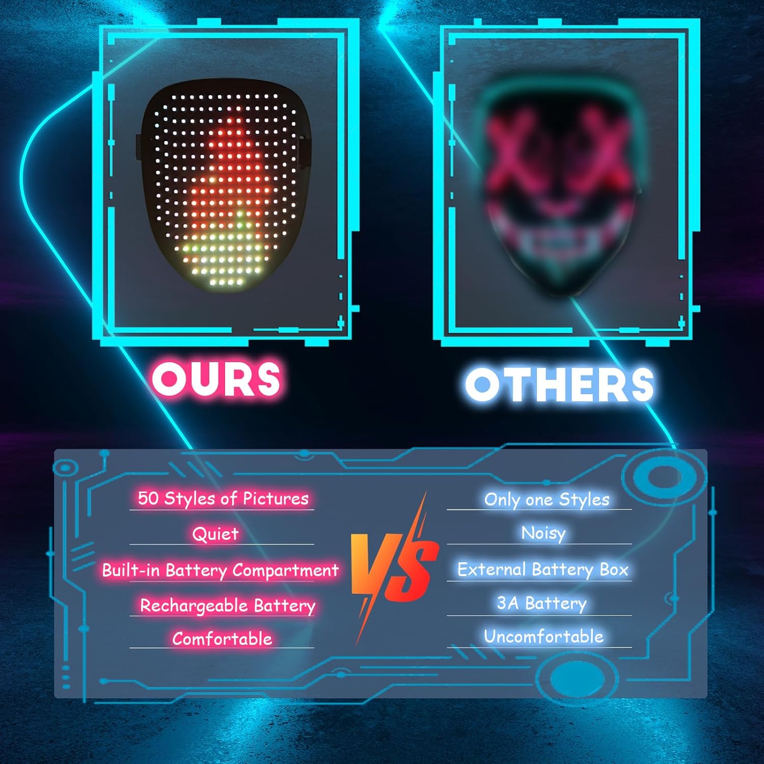 Imagine being the star of every event with a mask that changes colors and patterns at your command. This LED mask ensures you stand out, creating unforgettable memories. Its vibrant display dazzles everyone, making it perfect for parties.