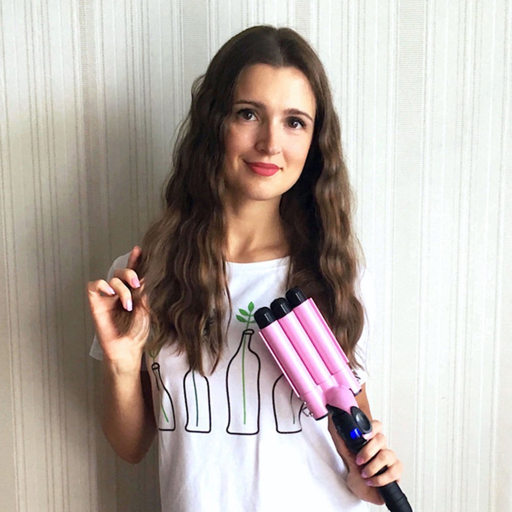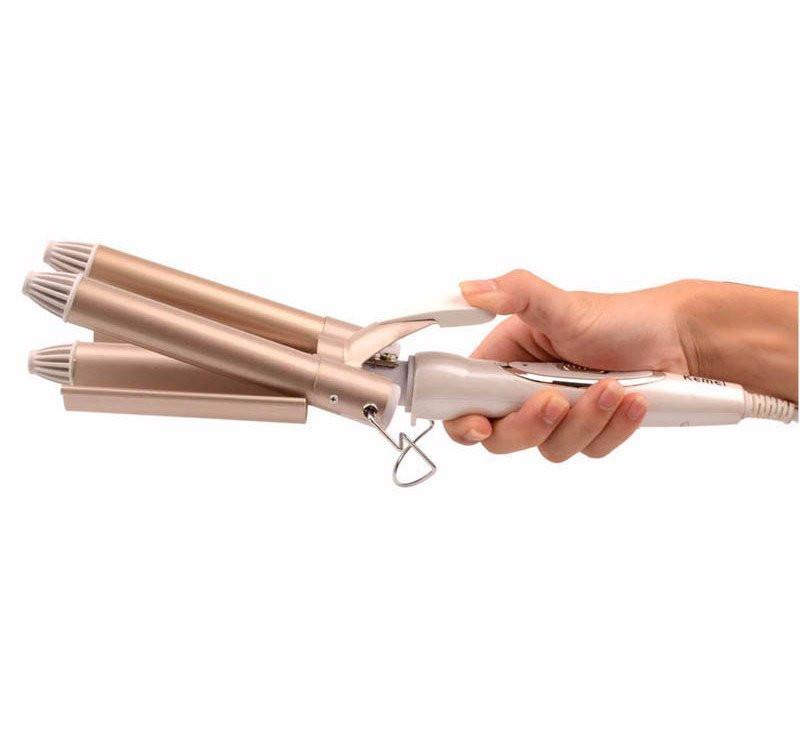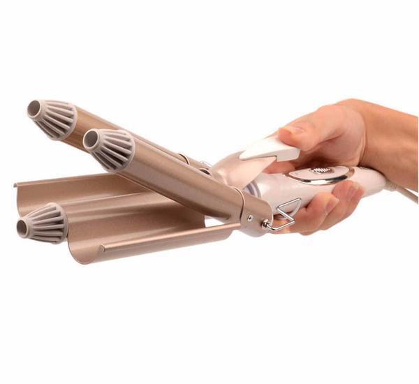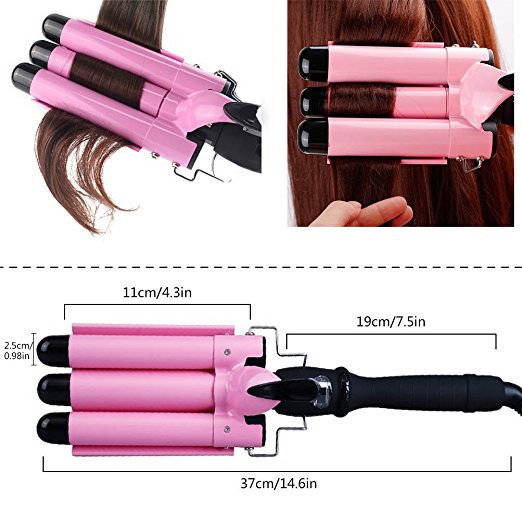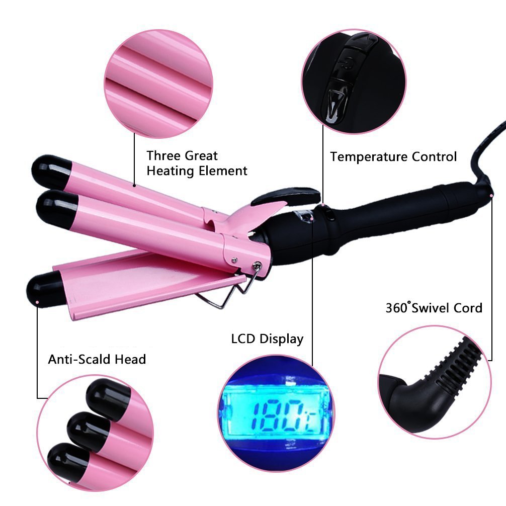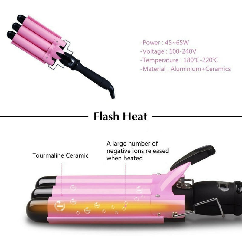 Professional triple barrel hair curling iron helps create beautiful and romantic "S" waves, easy to operate. PTC (Professional Tourmaline Technology), fast heat up and fast heat recovery helps acquire the desired temperature in 30 seconds making it unique among other styling tools.