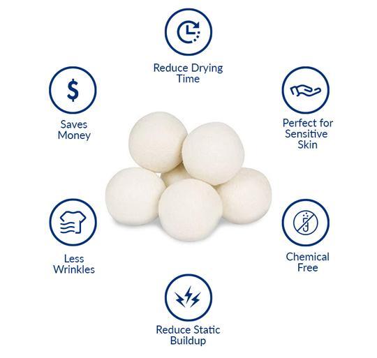 Wash Wizards™ Wool Dryer Balls naturally absorb moisture without any chemicals. Perfect for sensitive skin! The size & weight opens up space between your clothes during the cycle. So warm air can circulate & reduce drying times.